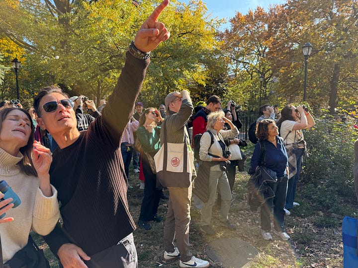 This is absolutely the best part of this whole strange experience—getting to tell (and show) people why birding in New York has changed the way I see the city I love. I got to do that at the nearby Montauk Club the next night, and again a few days later at Book Club Bar in the East Village, where after my late-morning talk I led a group of thirty or so into Tompkins Square Park.